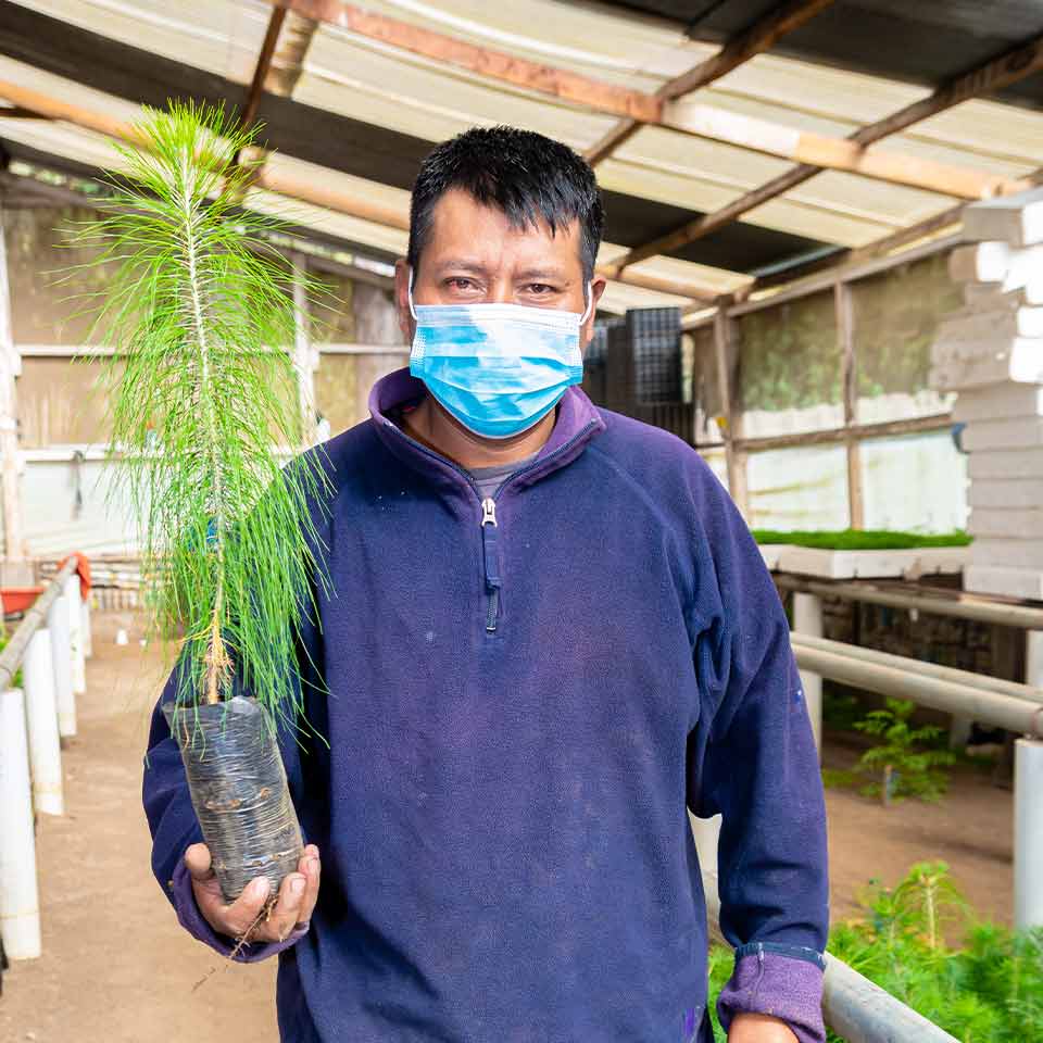 El trabajo de Don Pedro es digno de admiración, con un cuidado muy singular de las plántulas forestales. Todos los días trabaja en el vivero forestal municipal de Loblatzan Chiquito, la comunidad de San Martín Sacatepéquez en la que vive.